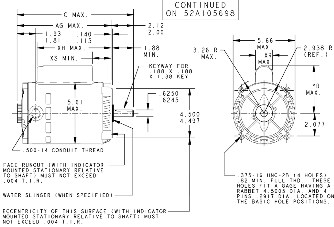 - NEMA 56C Frame, 5’8″ dia. by 1-5/8″ long keyed shaft, 60 Hz