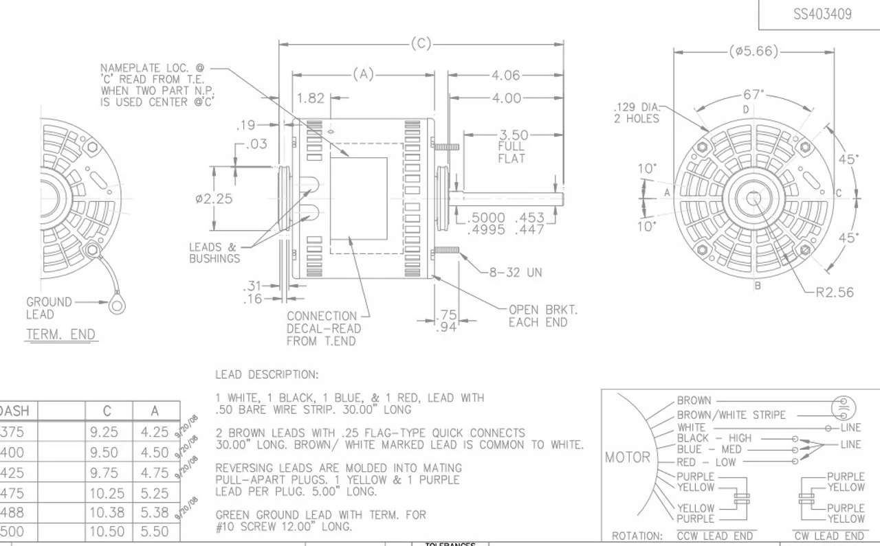 - 1/3 hp 1625 RPM, 4.0 amps, 115 Volts 60 Hz, Permanent Split Capacitor (PSC)