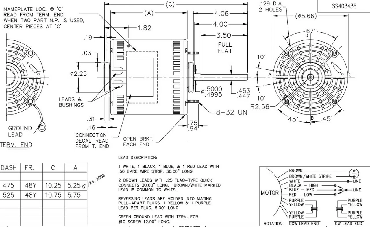 - 3/4 hp 1075 RPM, 5.0 amps, 277 Volts 60 Hz, Permanent Split Capacitor (PSC)