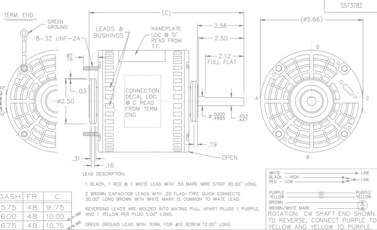 - No Base, Reversible, Ball Bearings, Class B insulation